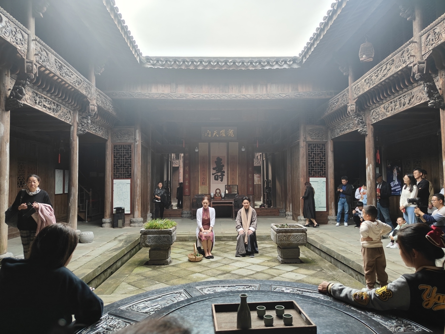 上海文慧沪剧团《经典沪剧折子戏专场》登陆小镇梨园堂古戏台,既有传统老戏《阿必大》,又有来自异域的《断线风筝》,更有经典现代戏《深秋的泪痕》。沪剧唱腔在徽式建筑黛瓦飞檐中相映成趣。